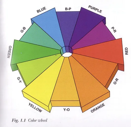 The first attribute of color is hue, which is the name for a color, such as yellow, green blue, red. The color wheel is used to represent the basic color (hues) of the visible spectrum. All the hues indicated on the color wheel are of full intensity. For the sake of simplicity, the most common color wheel is made up of 12 color gradations, even though there are actually an infinite number of color gradations possible between each color on the wheel.